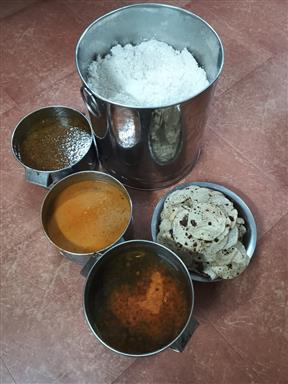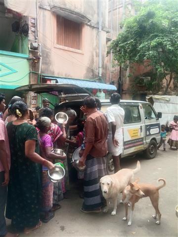 Distribution location :Kotturpuram Menu: white rice,dal,bread hal. . .